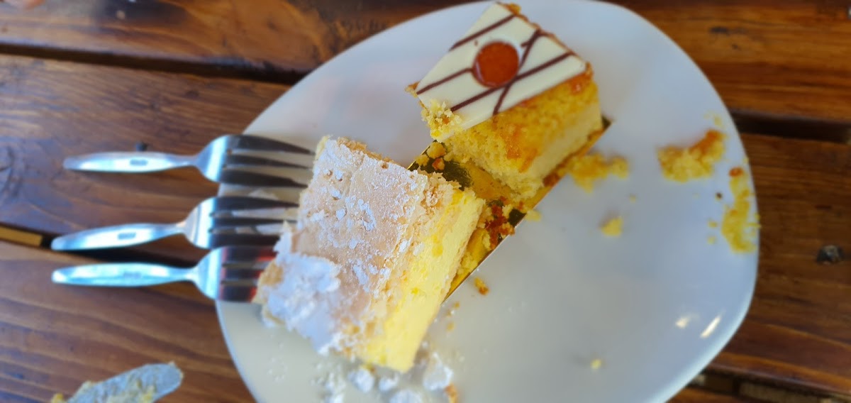 Cake enthusiasts will find themselves torn between the various options showcased on the top shelf—each a tempting masterpiece that pairs beautifully with their beverages. Guests like Christine Brandt highlight the wide selection of cakes and consistently good service, making it a great spot for quick catch-ups or leisurely afternoons with friends.